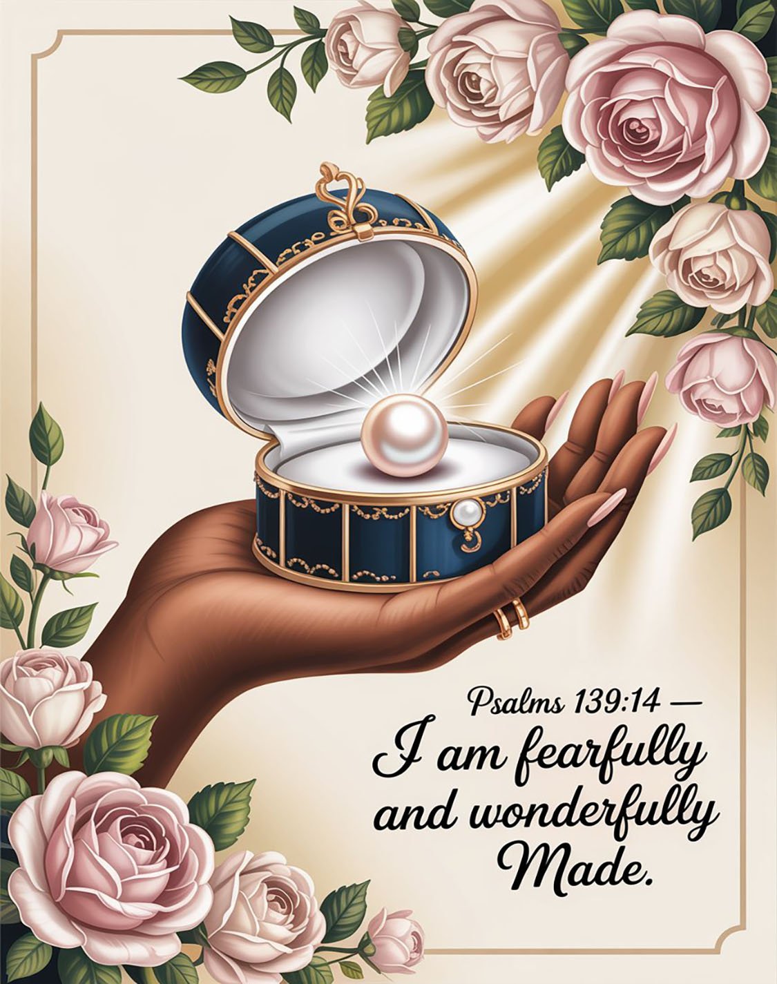 You are God’s masterpiece crafted with intention, wrapped in grace, and treasured beyond measure. What He placed inside you is precious, purposeful, and divinely designed. Like a pearl formed through time and care, your beauty was shaped by His hands and refined by His wisdom. You are not an accident, not overlooked, and never ordinary.